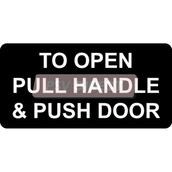To Open Pull Handle & Push Door Sticker, White Text on Black Background, 121 x 60mm
