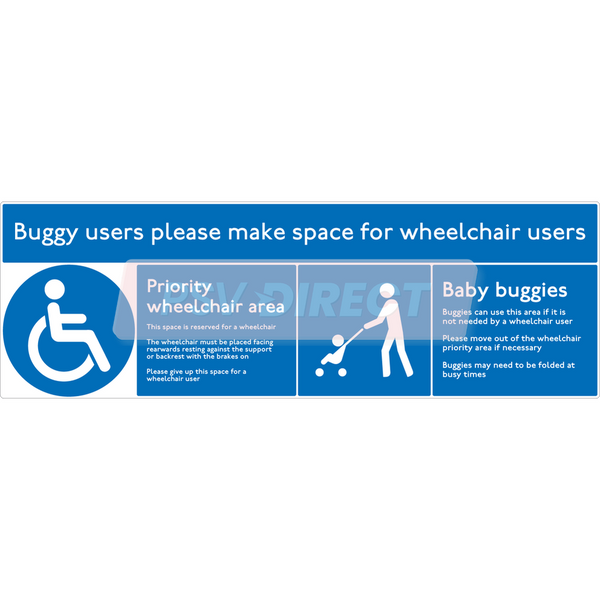 Buggy Users Please Make Space For Wheelchair Users Sticker, White Text on Blue Background, 588 x 193mm