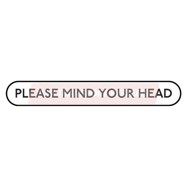 Please Mind Your Head Sticker, Black Text on White Background, 56mm Height