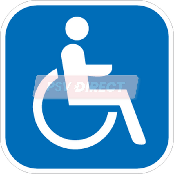 Disabled Badge Sticker, Man in Wheelchair, White Symbol on Blue Background, 100 x 100mm