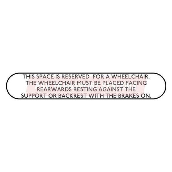 This Space Is Reserved For A Wheelchair Must Be Placed Facing Rearwards Sticker, Black Text on White Background, 85mm Height