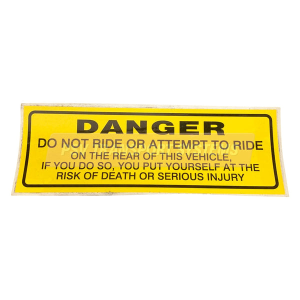 Danger, Do Not Ride or attempt to ride on the rear of this vehicle, if you do so, you put yourself at the risk of death or serious injury Sticker....