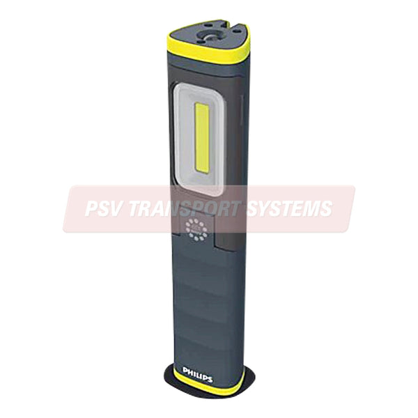 The Philips Xperion 6000 Pillar lasts all day on a single charge. Its bright 250 and 500 lm main light and inbuilt 180 lm torch will meet multiple needs. Foldable for easy carrying and adjustable lighting angles.