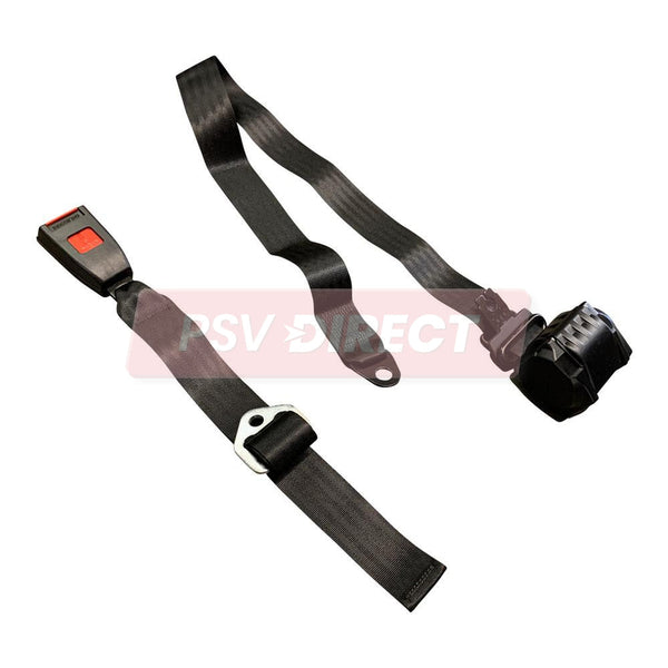 3 Point Inertia Seat Belt and Buckle, Buckle Connection Length Up to 470mm, Webbing Length Retractor to End Bracket 3140mm with Wire Loop, Vertical Mounting